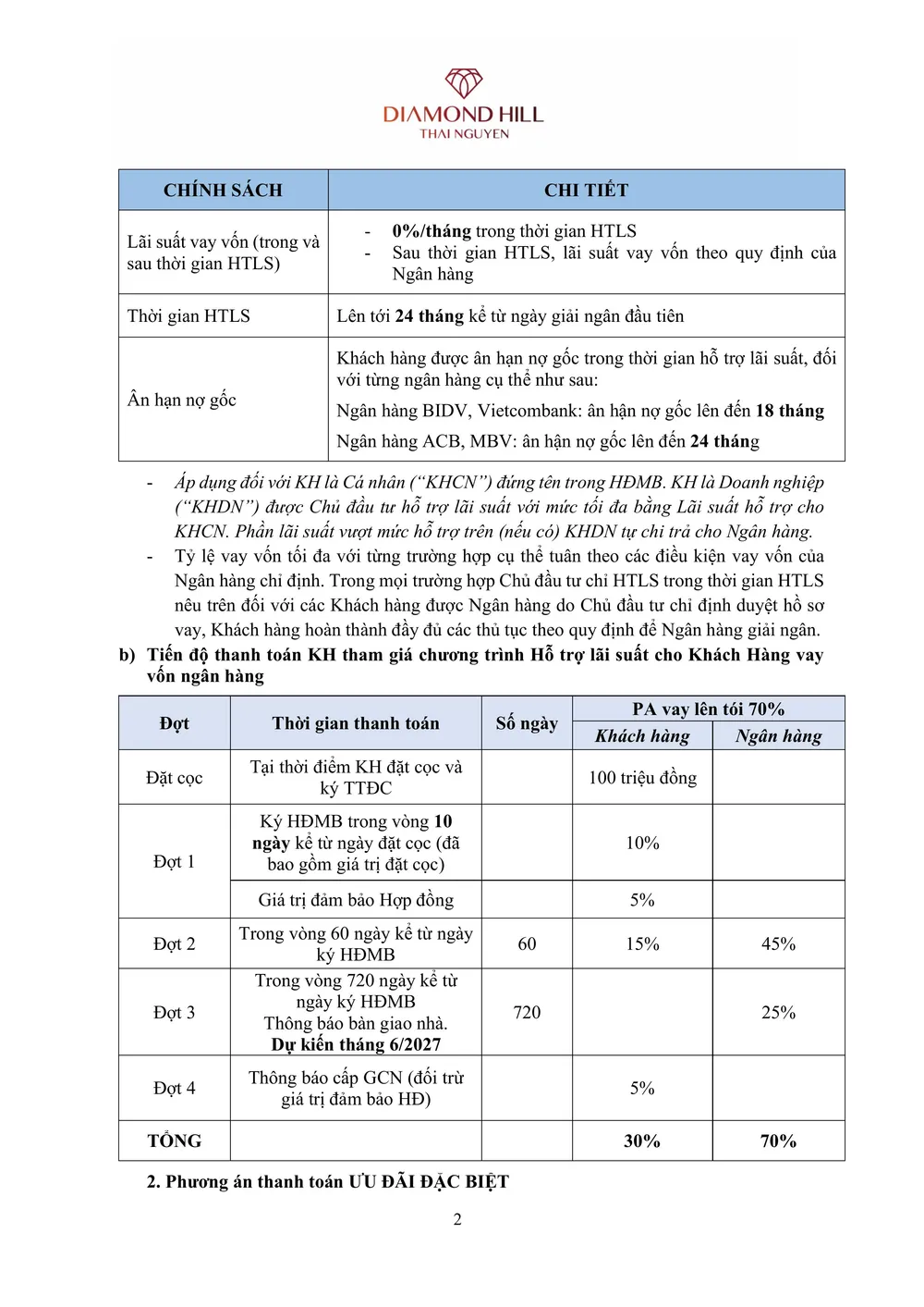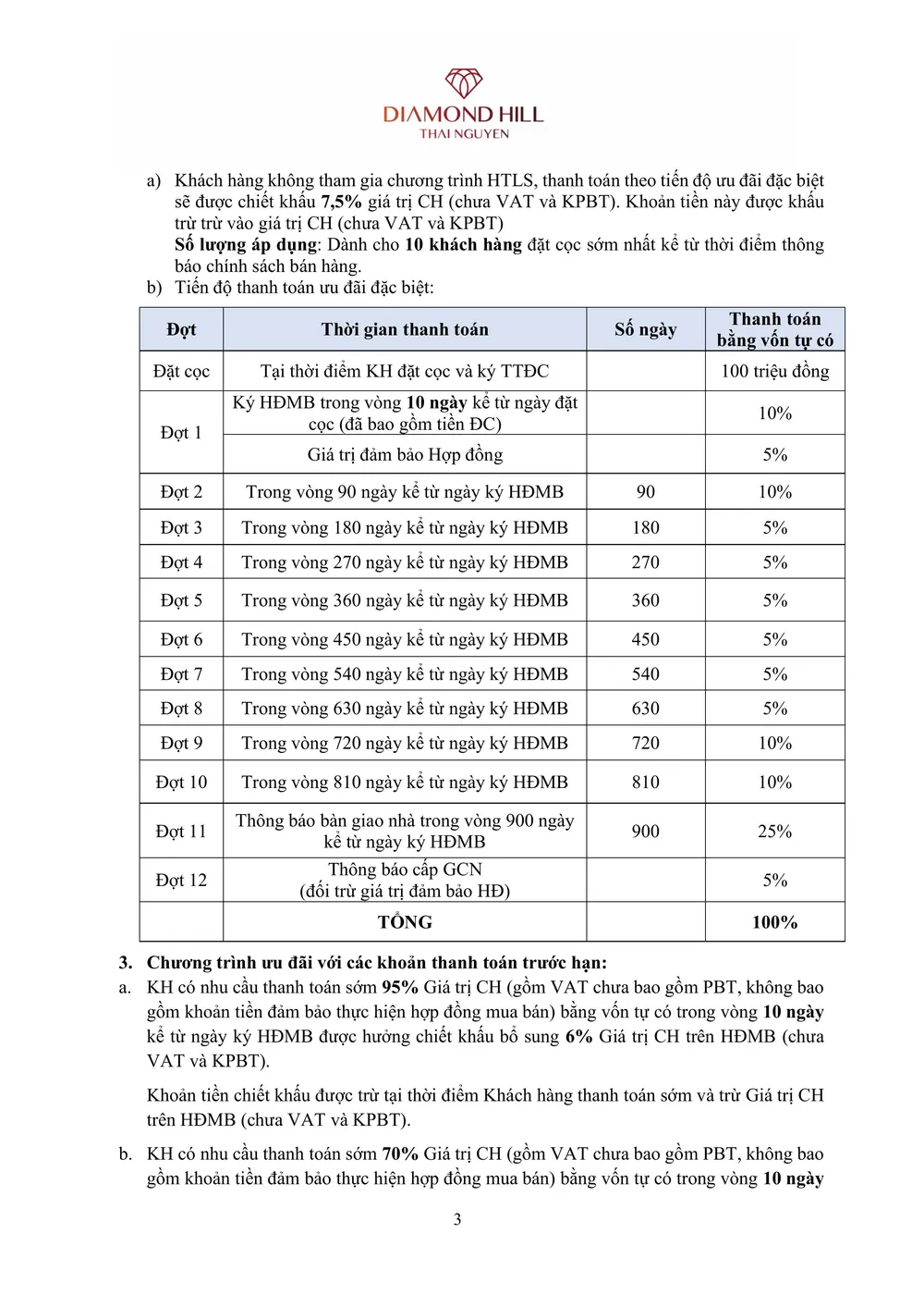 Phương án thanh toán ƯU ĐÃI ĐẶC BIỆT (không vay ngân hàng)