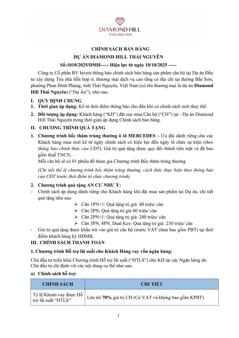 - Tên Dự án: Chung cư BV Diamond Hill Thái Nguyên.