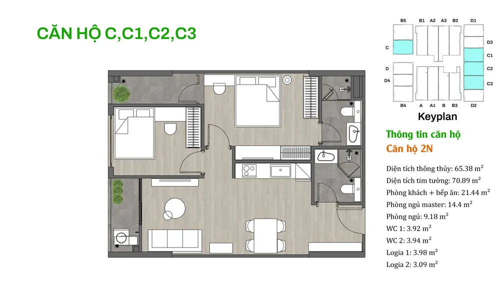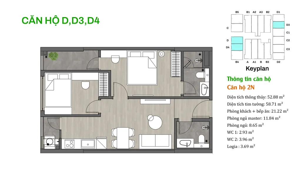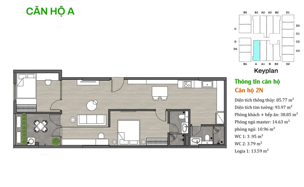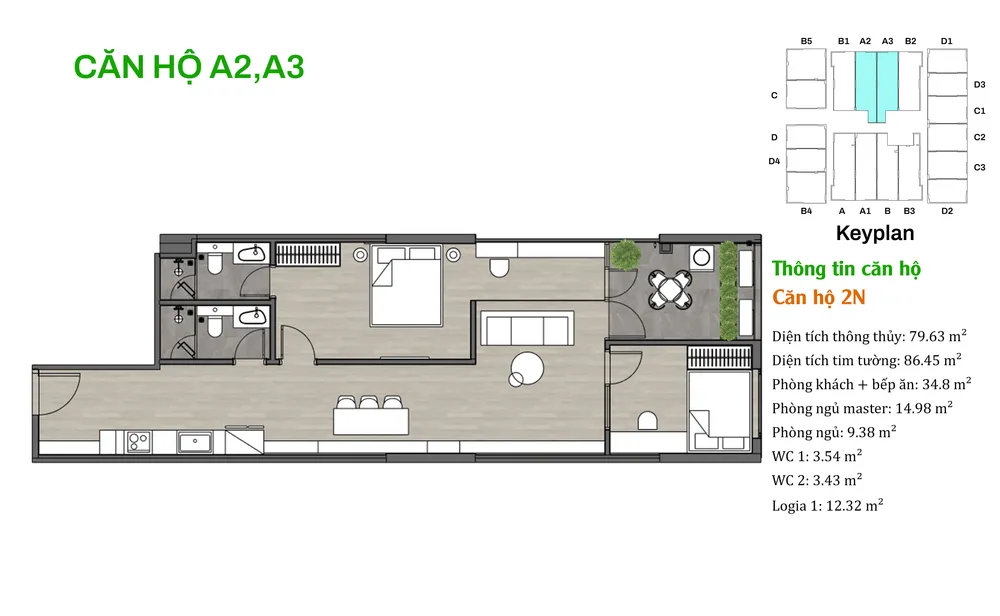 • Thiết kế hiện đại: Mỗi căn hộ được bố trí hợp lý để đảm bảo thông gió và ánh sáng tự nhiên, tạo cảm giác rộng rãi và thoải mái cho các gia đình.