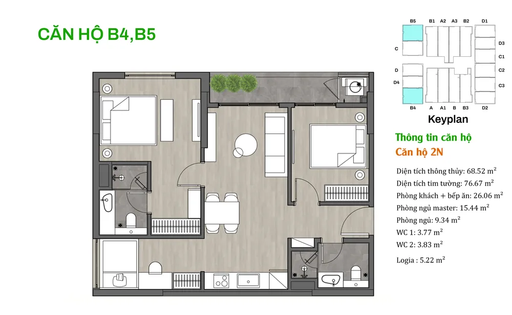 • Tặng gói nội thất trị giá 35 triệu đồng/căn khi mua các căn hộ mã B4, B5, C, C1, C2, C3, D, D1, D2, D3, D4.